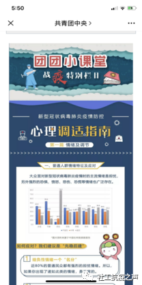 为助力新型冠状肺炎疫情阻击战,重庆城市管理职业学院民政与社会治理学院以社会工作专业《社区心理学》《家庭社会工作》《老年社会工作》《儿童社会工作》《生命教育》等专业课程教学为基础,于1月28日组建了由10余名党员教师和授课班级学生组成的“教学-服务”团队,师生团队积极构建模块化专业课程体系,编制了《战疫心理调适指南》,在共青团中央官媒平台《团团小课堂》《重庆高校在线开放课程平台》等发布了11期疫期专业服务与心理调节的在线教学资源。在线授课以来,师生分成心理咨询组、儿童在线陪伴组、老年在线陪伴组、一线人员减压组等四个学习服务小组,采用项目化教学方法,学习服务融合,既妥善化解了疫情给学生带来的心理健康隐患,同时也引导学生面向一线工作者、儿童、老年人、国外留学生开展了课程服务实践。不仅实现了“停课不停学”,而且还激发了学生的学习热情,充分实现了知行合一专业学习。