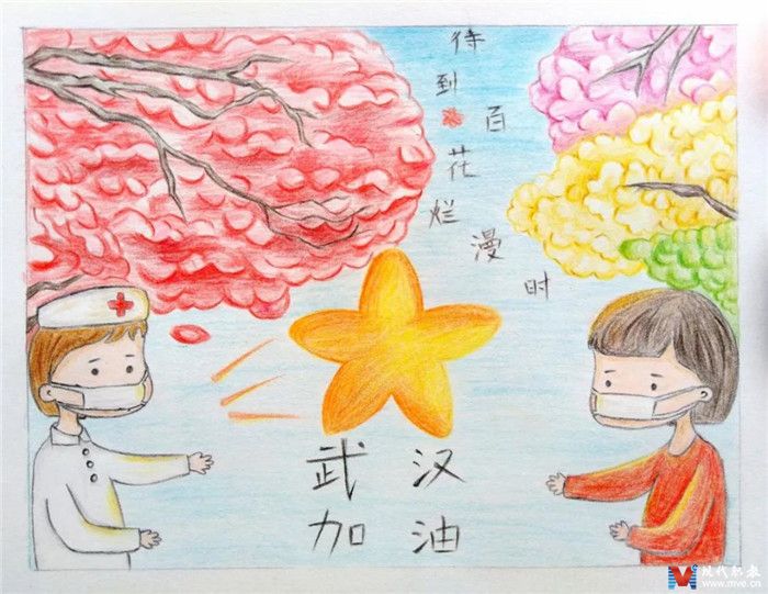 星星象征着光明,医生将光明播散到各个角落,光芒照耀在每个人身上。待到百花烂漫时,武汉又是繁花一片。