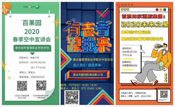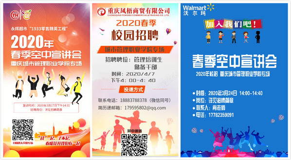 商学院积极响应国家和重庆市推进毕业生就业工作精神,深入挖掘就业渠道和拓展就业资源,在3月初到4月15日,线上举办11场2020届毕业生商贸流通企业空中招聘会。