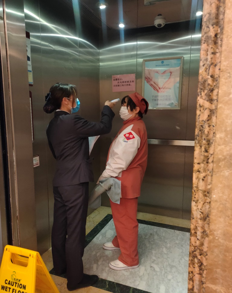 物业管理专业的廖俊严同学成为第一批赴岗位实习的学生,在重庆医科大学附属口腔医院担任保洁主管,每日负责项目环境消杀,保洁员体温测量,日常保洁操作及入职员工培训。其工作受到实习单位上海益中亘泰物业(集团)股份有限公司及项目甲方重庆医科大学附属口腔医院的高度认可和赞赏。