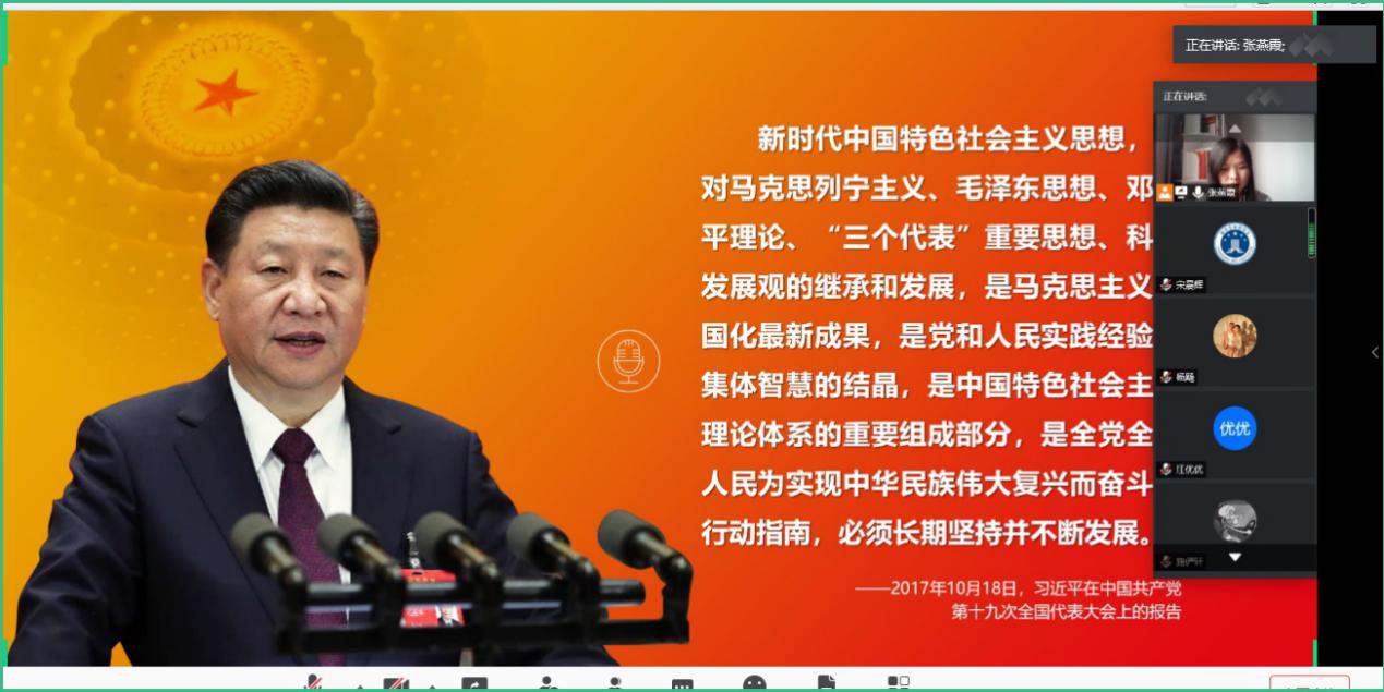 为推动我校师生深入学习贯彻习近平新时代中国特色社会主义思想,更好地发挥《习近平新时代中国特色社会主义思想三十讲》课件的理论学习辅助作用,进一步深化我校师生对习近平新时代中国特色社会主义思想的学习、理解和把握。5月14日下午,我校习近平新时代中国特色社会主义思想学习会组织开展了一场以“学习有声 我是朗读者”为主题的云端主题分享活动。马克思主义学院副院长杨飏、思政课教师代表及我校习近平新时代中国特色社会主义思想学习会骨干成员参加了活动。活动由马克思主义学院青年教师张燕霞主持。