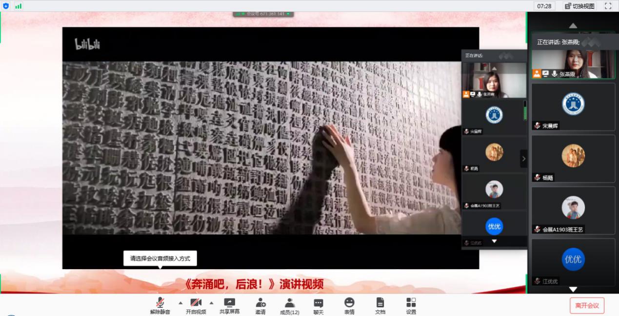 活动伊始,与会人员共同观看了视频《奔涌吧,后浪!》,视频中展现了当代青年是有爱有担当的一代,是有创意敢拼搏的一代。从“一带一路”的青春挥洒,到战“疫”一线的青春担当,到扶贫基层的脚踏实地,“后浪”奔涌,成就了今日中国之辉煌,也为国家复兴凝聚起了磅礴的力量。青年一代逆行防疫一线,不畏艰险、冲锋在前、真情奉献,用实际行动证明了新时代的中国青年是好样的,是堪当大任的。