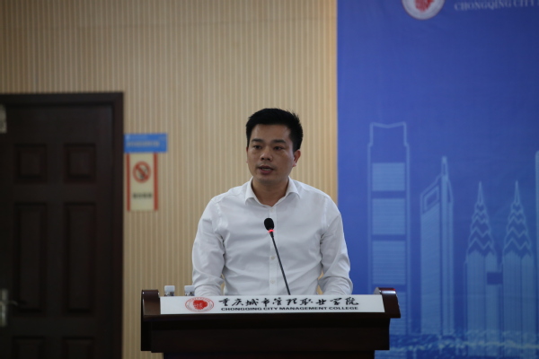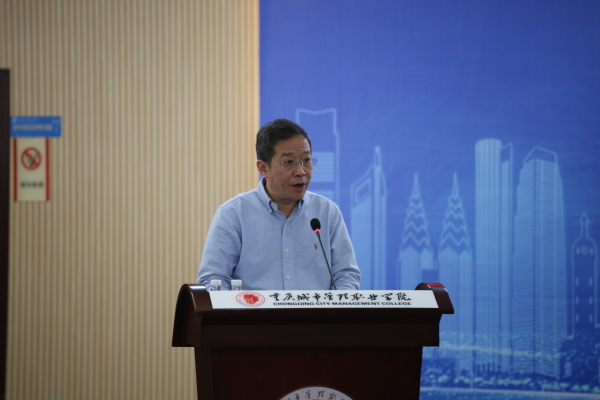重庆城市管理职业学院党委书记任波致辞。他指出,职教集团的成立,将促进成渝地区商贸流通产教深度融合,加强学校、行业、企事业单位之间的全面合作,形成“政校行企”四方协作联动机制,打造技术技能人才培养高地和创新服务平台,促进资源集成和共享,建立校企共同参与的多主体质量评价和保障机制,建设商贸流通高水平专业群,助力成渝地区双城经济圈商贸流通产业高质量发展。