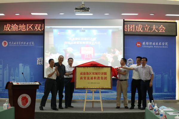 会上,成渝两地上级主管部门相关领导、新当选的“两地三方”理事长共同为成渝地区双城经济圈商贸流通职教集团揭牌,宣告了成渝地区双城经济圈商贸流通职业教育集团的正式成立。