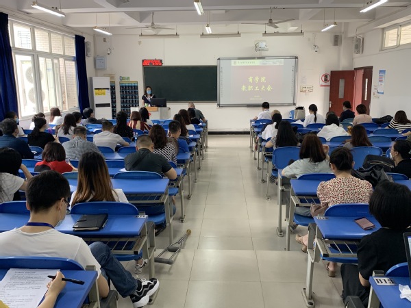 为确保师生有序返校复学,5月22日,商学院召开返校复学全体教职工大会,会议主要围绕学院党建引领、学生就业、教学复课工作及2020年工作部署进行。会议由党总支书记蒋芹忠主持,学院86名教职工全部到会。