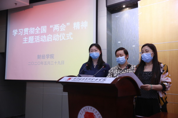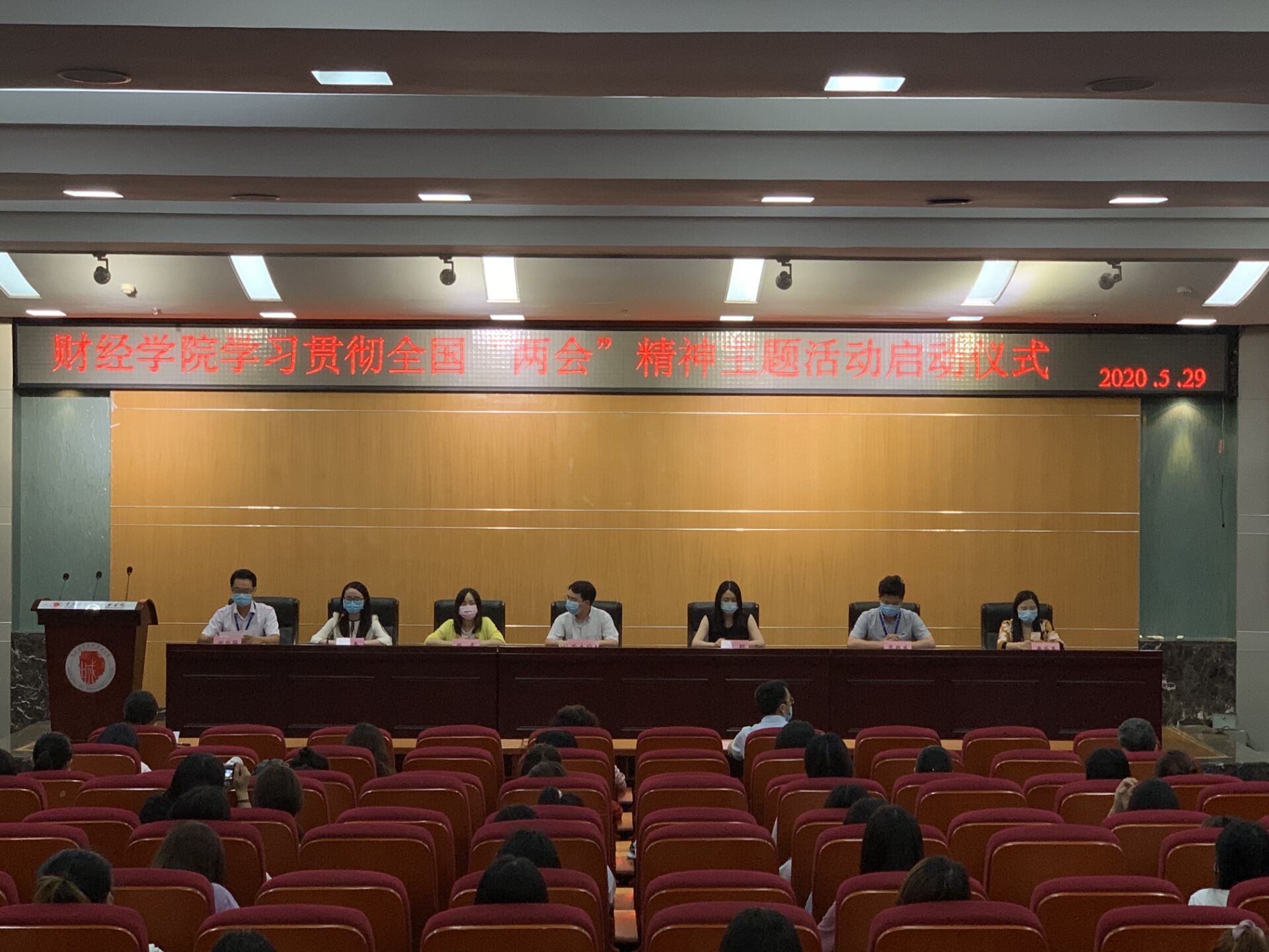 为学习贯彻全国两会精神,5月29日,财经学院在学术报告厅举行学习贯彻全国两会精神主题活动启动仪式。相关职能部门负责人、马克思主义学院“四联系”指导教师和财经学院全体教职工参加活动。活动由财经学院党总支书记谢朝晖主持。