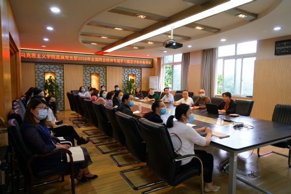 为深入学习贯彻2020年全国两会精神,进一步加强和改进我校思想政治理论课建设工作,更好发挥思想政治理论课立德树人关键课程作用,6月2日,马克思主义学院在办公楼第三会议室组织开展2020年全国两会精神专题学习暨宣讲集体备课会。活动由高在秋副教授主讲,马克思主义学院直属党支部书记唐丽主持。