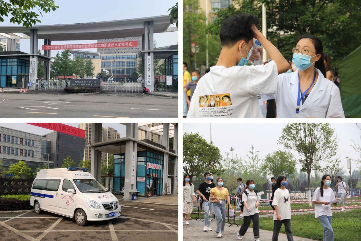 为做好疫情防控和考务组织工作,我校严格按照四川省招考委、四川省教育厅《关于做好我省2020年高职单招疫情防控及考试工作的通知》的要求,一是做好身体健康监测。考前14天起,考生登录四川省教育考试院指定系统进行健康信息填报。考试当天,师生单向流通进入考点和考场,对涉考师生进行了4次体温检测并逐一登记备案。二是做好考试环境消杀。我校委托考点学校安排专业人员对考试区域进行了考前、考后消毒,在考场各个环节点安置免洗洗手液供师生消毒使用。三是做好应急处置准备。考点学校主动联系属地招考委、公安、疾控及医院,排除特勤车辆和救护车辆蹲守驻地,做好师生安全应急保障。四是做好考点人员管控。考点学校对校园实施封闭管理,确保人员进入学校前排查到位,杜绝疑似人员进入考点,消除潜在风险,构筑严密防线。五是做好考生后勤服务。考试期间,我校向考生免费发放了医用外科口罩,向考生发布防护提示信息,免费向考生提供盒饭午餐,解决考生的后顾之忧。六是做好考务组织管理。按照四川省教育考试院的统一要求,对试卷管理、考场管理等工作进行全程监控、全程监督,为考生营造了公平公正的考试环境。