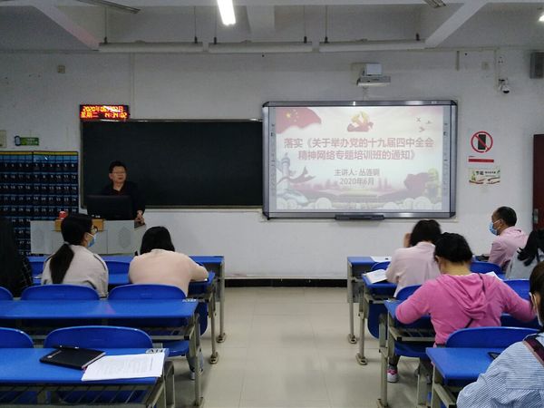 6月2日,文化与旅游学院党总支召集全体党员在教学楼D104召开十九届四中全会精神网络专题培训暨2020年全国两会精神学习动员会,会议由文化与旅游学院党总支书记丛连钢主持。