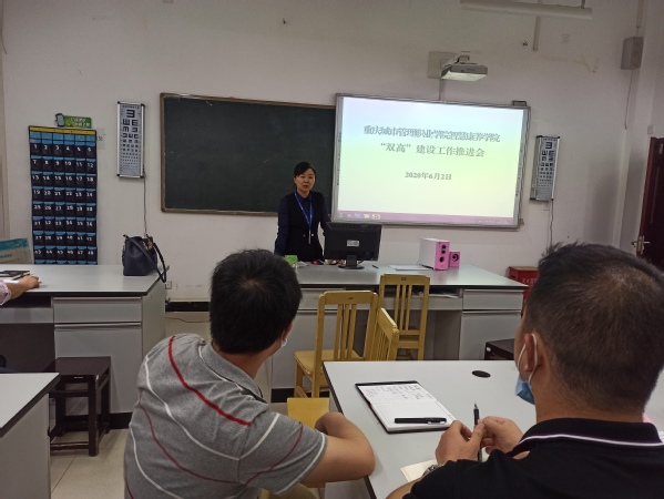 会上,学院院长张俊、副院长雷靳灿带领全体教职工学习了“双高”建设方案,包括老年服务与管理专业群建设背景与基础、建设目标与思路、建设任务与举措、建设进度与经费预算、预期建设成效,重点强调了标志性成果的特点:高水平、高质量、具有高显示度,分析了取得标志性成果的途经与方法。