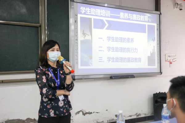 会上,民政与社会治理学院党总支书记陶军屹紧密围绕“学生助理素养与廉政教育”这一主题,就此次助理培训的初心和意义、如何提升学生助理的素养、如何提升学生助理的执行力、如何培养学生助理的廉洁能力等基本问题进行了深入浅出的讲解。她希望每一位参加勤工助学的同学都能倾我热情、尽我所能,恪尽职守、脚踏实地,全方位的历练自己。她的培训引人入胜、发人深省,同学们频频点头,师生互动频繁,让初入职场的学生能尽快了解助理的工作职责。