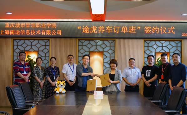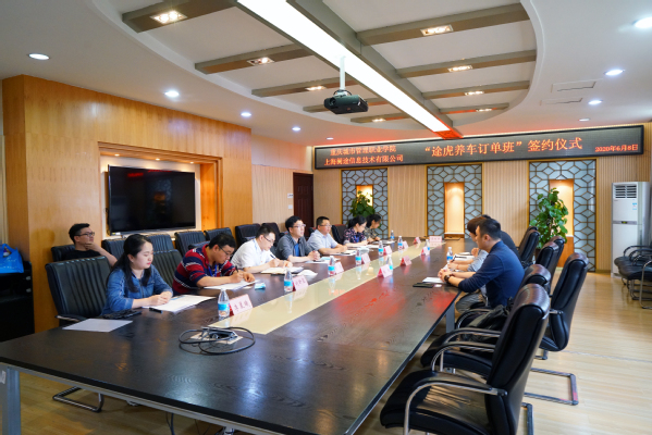 6月8日,我校与上海阑途信息技术有限公司(途虎养车)签订“途虎养车订单班”协议,共同培养智能控制技术专业人才。签约仪式在办公楼第三会议室举行。学校副校长莫堃,上海阑途信息技术有限公司(途虎养车)校企项目负责人李燕培,高级经理鲍京,运营经理林鹏,我校产教融合中心主任江柯、智能工程学院相关教师参加了签约仪式。仪式由智能工程学院院长彭勇主持。