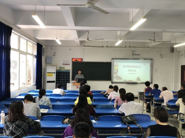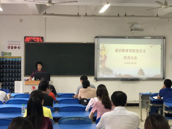 6月9日,通识教育学院党总支召集全体党员在教学楼D205召开党的十九届四中全会精神网络专题培训暨2020年全国两会精神学习动员会,会议由通识教育学院党总支书记李兰主持。
