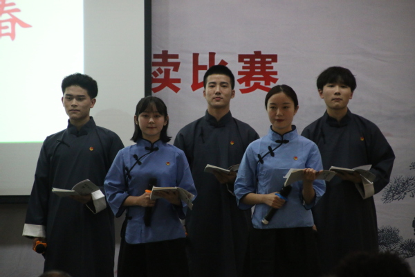 比赛现场,老师、同学们以充沛饱满的感情,自信大方的形象赢得现场评委和同学们的阵阵掌声。比赛的内容和形式更是丰富多彩,师生们有的朗读千古传颂的名篇,重温经典,感受传统文化的魅力;有的吟诵诗词,在轻悠的配乐中,吟诵者带领观众们走进诗人的心田;有的用真挚的情感和动人的歌声歌颂新时代。