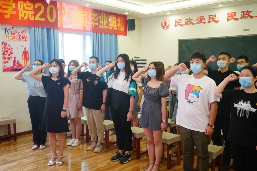 为庆祝中国共产党成立99周年,继承和发扬党的光荣传统和优良作风,进一步增强基层党组织的战斗力、凝聚力和吸引力,6月29日,民政与社会治理学院党总支在敏学楼C312教室举行了2020年新党员入党宣誓仪式暨毕业生党员教育活动。民政与社会治理学院党总支书记陶军屹,相关教师及2017级、2018级学生预备党员参加本次活动。活动由民政与社会治理学院党总支专职组织员李国英主持。