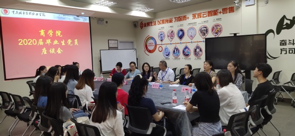 6月29日,商学院党总支在学院智慧零售实训室召开2020届毕业生党员座谈会。学院党总支书记蒋芹忠、副院长兼党总支副书记黄蘋、党总支副书记唐鸿铃、各党支部书记及2020届毕业生党员参加此次会议。