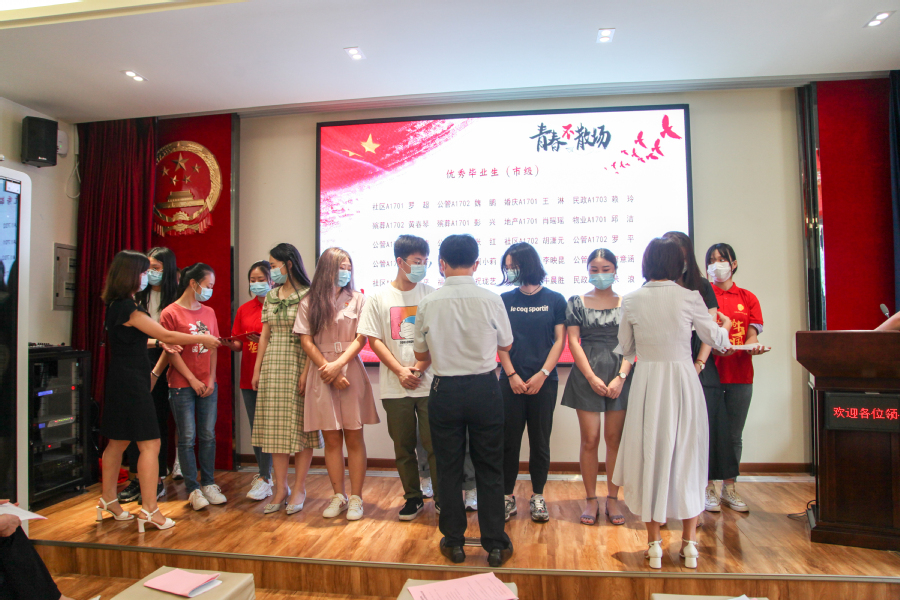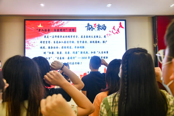 在离别之际,毕业生们还进行了“步入社会·与廉同行”宣誓仪式,在庄重的廉洁宣誓中接受思想的洗礼,勤于修身、严以律己,坚决抵制社会不良风气的侵蚀,克服功利主义思想,做到勤学、廉洁履职,扣好步入职场的第一粒扣子!