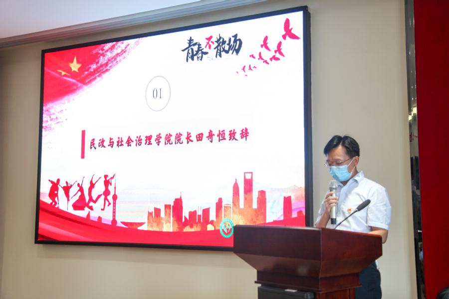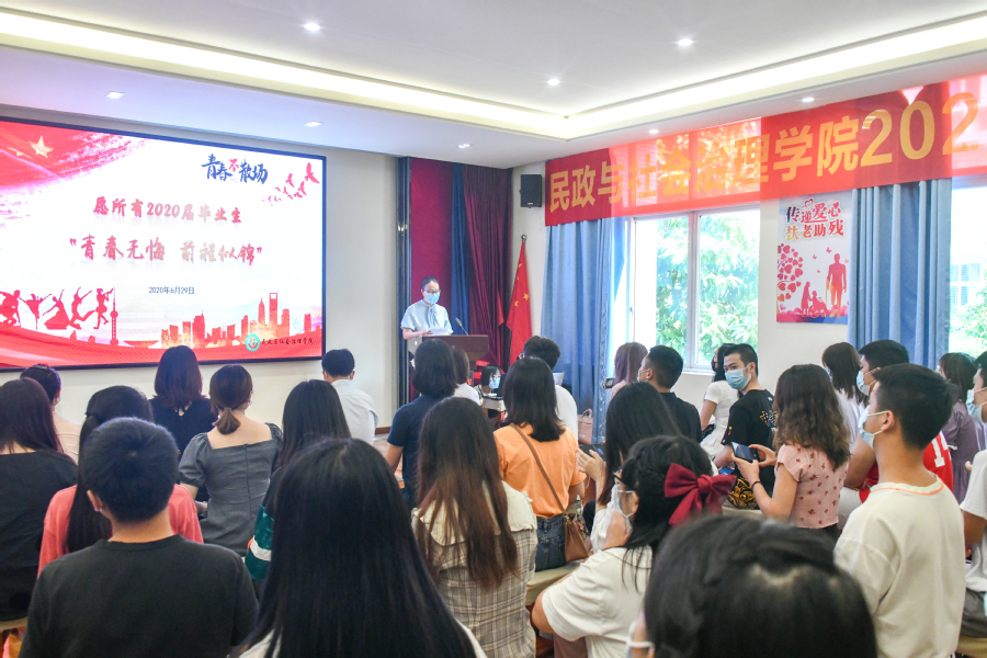 6月29日,民政与社会治理学院2020届学生毕业典礼在教学楼C312教室举行。民政与社会治理学院党总支书记陶军屹、院长田奇恒以及教师代表、2020届毕业生代表参加了本次活动。本次毕业典礼由学院专职组织员李国英老师主持,采用线上线下短视频同步直播的方式,600余名毕业生相聚云端观看了毕业典礼。