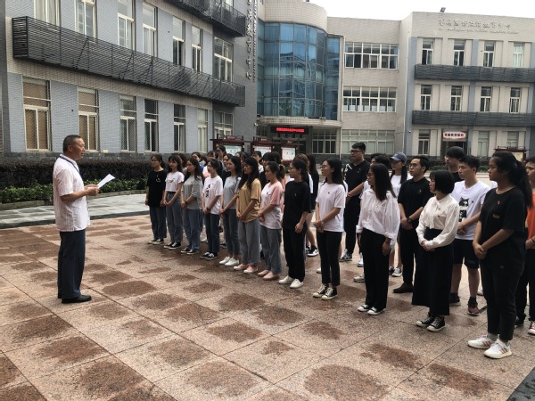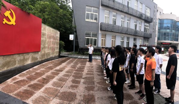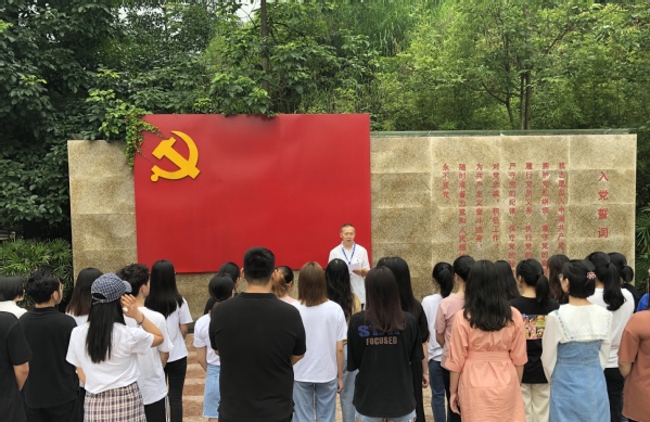 6月30日,商学院2020年新党员入党集体宣誓仪式在学校睿德思想政治教育中心入党宣誓墙前举行。宣誓仪式上,学院党总支书记蒋芹忠为2020年新发展的党员上了一堂生动的专题党课。