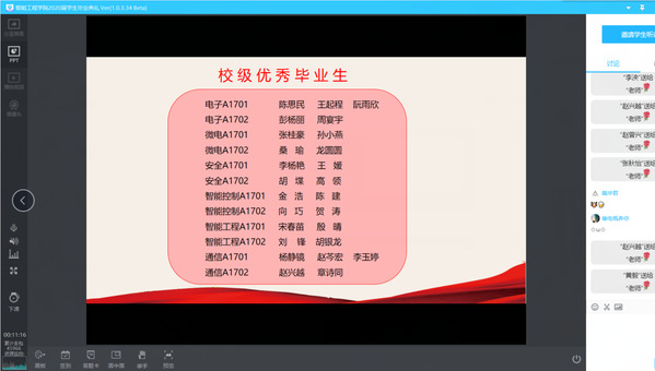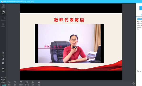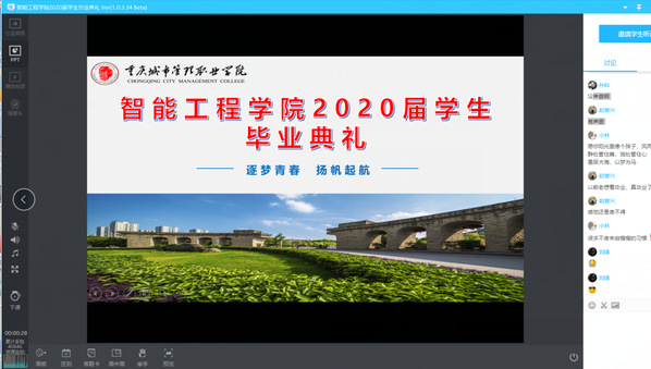 6月29日,智能工程学院2020届学生毕业典礼在“云”端举行,典礼由智能工程学院党总支书记余光琳主持,学院2020届毕业生相约云端观看了毕业典礼。