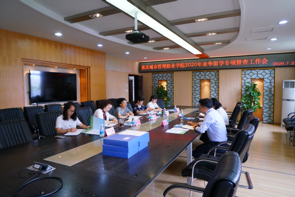 7月2日,重庆市教委2020年上半年来华留学生招生和管理工作专项督查会在办公楼第二会议室举行,重庆市教委国际合作处副处长李斌(主持工作)一行2人担任本次督查组专家,副校长罗小秋、国际合作与交流中心、主任吕红、副主任邓春梅及留学生辅导员参加,吕红主任主持督查会。