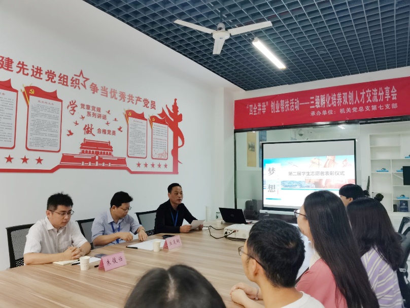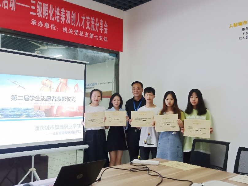为深入贯彻落实学校《科研创新服务行动计划(2019-2022)》精神,进一步深化学校以促进科技创新、服务创新、研究创新、制度创新“四轮驱动”为基本路径,全面激发师生创新创业活力而举办,7月9日,由科研与规划发展处创新创业中心组织的会展旅游科研创新团队第二届学生志愿者表彰仪式在图书馆一楼城市星光众创空间举行。文化与旅游学院丛连钢院长、创新创业中心朱俊任主任及会展旅游科研创新团队成员等共19人参加会议。