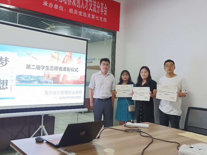 会议还宣读了2020年会展旅游发展科研创新团队优秀志愿者的表彰决定。丛连钢院长作为科研团队的主管二级院系领导,给荣获“学校会展与旅游专业精英奖”的志愿者颁奖,朱俊任主任代表校科研处荣获“科研与规划发展处专业勤学奖”的志愿者颁奖,莫志明老师给荣获“会展志愿者联盟协会优秀志愿者奖”的志愿者颁奖。