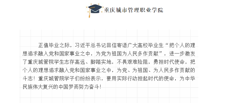 作者:党委宣传网工部 学生处审核发布:重庆城市管理职业学院发布者:党委宣传网工部发布时间:2020-07-17浏览次数:2117