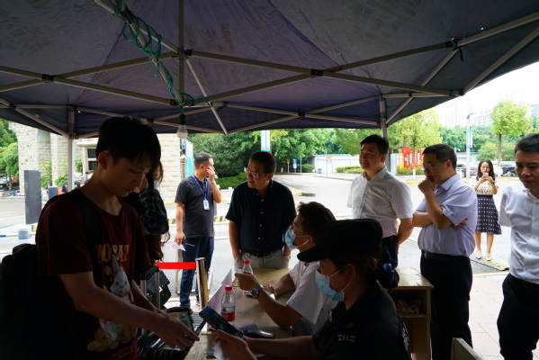 为切实做好学校2020秋季开学校园安全防范和疫情防控工作,确保开学期间学校安全稳定,保障学校各项教育教学工作的顺利进行,9月4日,学校党委书记任波、校长邓明国及全体校领导带领党政办公室、安全管理处等部门负责人,通过实地走访,对学校进行了全面检查。