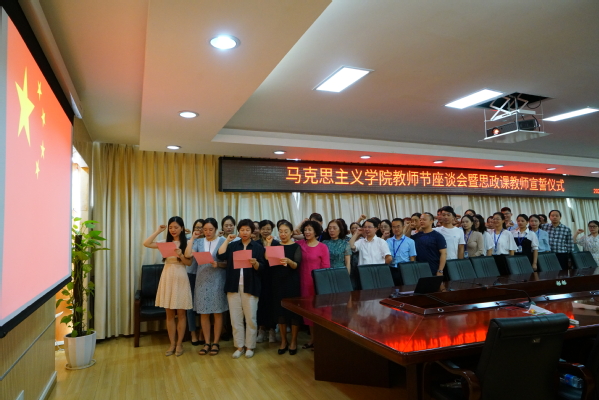 本次座谈会暨思想政治理论课教师宣誓仪式加深了老师们对教师职业的认识和理解,更激发了大家作为新时代思政课教师的责任和使命意识,大家纷纷表示要以实际行动践行誓词,不忘育人初心,牢记教师使命,努力做人民满意的“四有好老师”,为学生德智体美劳全面发展奉献智慧和力量,为党和人民的教育事业而努力奋斗。