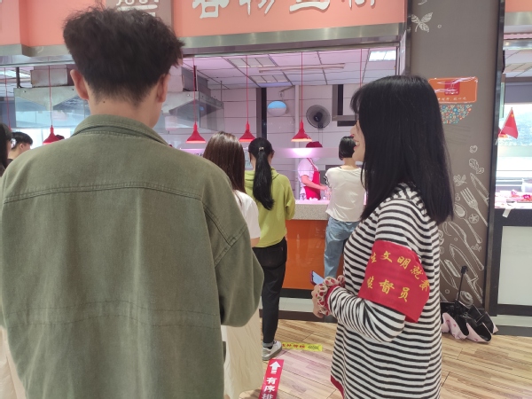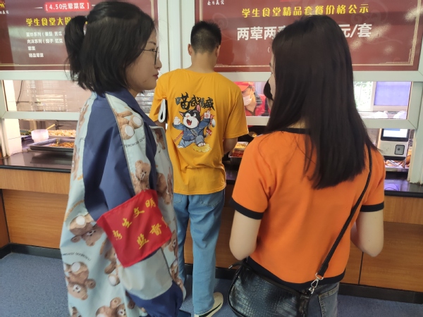 来自各二级学院的学生文明就餐监督员也已上岗到位。有的在学生食堂各区域,向前来用餐的同学发出反对浪费的提醒;有的在各档口提醒同学们有序排队,适量购餐,不够再购;还有的在餐具回收处,提醒未“光盘”的同学不要浪费粮食。同学们纷纷表示,监督员们的一声声提醒,无形中督促着自己将勤俭节约的传统美德“内化于心,外化于行”,更促使自己要“厉行节约、反对浪费”,争做“光盘行动”的践行者。