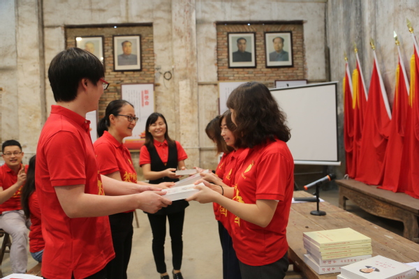 相看白刃血纷纷,死节从来岂顾勋。红藏馆内摆放着各类伟人油画、书籍、报纸、红军刀、枪等,陶军屹书记在党旗下带领支部党员重温入党誓词,强调各位师生党员要不断强化党员责任意识,牢记党的宗旨,不忘初心,努力奋进。随后支部宣传委员王颖辰老师主持开展了党员知识竞赛,以抢答的方式进行积分比较,评选出获奖党员并颁发奖品,进一步提高了师生党员的党史理论修养和学习积极性。紧接着党支部书记李国英老师为师生党员讲授了一堂生动的党课《做核心价值观的学习者和践行者》,极大激发了党组织学习活力,凝聚党员力量。最后,教师党员集体朗诵《习近平的新时代教育思想》,极大促进了党员教师深刻理解立德树人的根本任务,努力把立德树人贯穿到教育工作的各领域、各环节。最后在讲解员的带领下分别参观了精品厅和文创馆,活动在手工拓印中落下帷幕。
