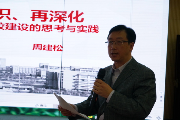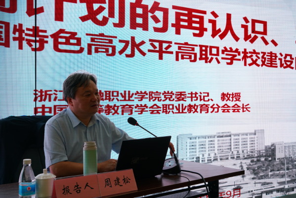 报告会上,周建松从“双高计划”的有关政策文件、“双高计划”的来龙去脉、“双高计划”的重点任务方向、“双高计划”的创与建等四个方面,对国家“双高计划”建设的背景、意义、建设内容进行详细剖析,深入阐述各项建设任务的着力点。整场报告内容丰富、理实结合,分析透彻,对学校做好顶层设计具有重要意义,对我校 “双高计划”建设的实施和人才培养改革等具有深刻的启迪作用。