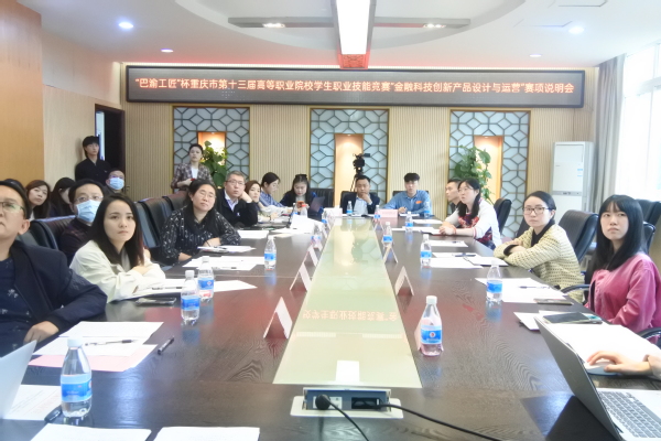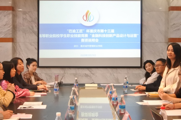 9月29日,2020年“巴渝工匠”杯重庆市第十三届高等职业院校学生职业技能竞赛金融科技创新产品设计与运营赛项在重庆城市管理职业学院召开。我校教务处副处长齐芳、财经学院院长孙鑫、技术支持方腾瀚科技有限公司和典阅科技有限公司、我校金融教研室以及重庆市内十余所高职院校的参赛领队和指导教师共计30余人参加了本次赛前说明。