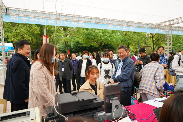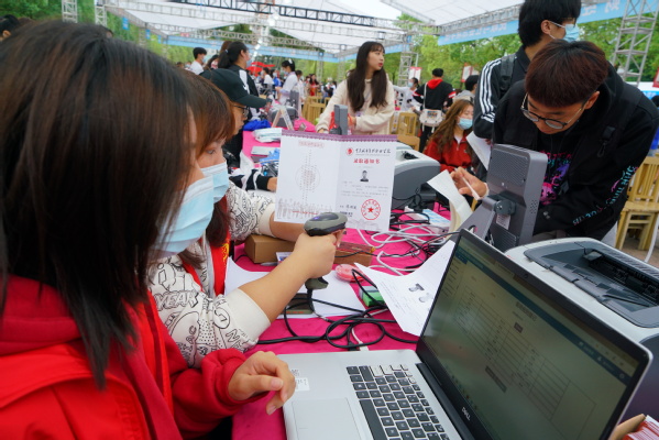 今年,学校继续通过多项举措方便新生快速完成报道。新生通过出示健康码、人脸识别、智能测温进入学校,在迎新现场,通过扫码枪扫码和人脸比对即可完成报到注册环节。学校还进一步优化了迎新系统,新生入学前即可通过迎新系统完成报到注册手续,完成报到流程查询、缴费情况查询等事宜,报到现场的智能大屏实时显示各二级学院和全校的新生报到的数据统计。