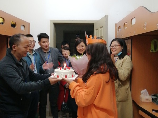 当晚,学校还举办了“为新同学送生日祝福”活动,校领导分别为报到当天恰逢生日的新同学送上了生日蛋糕。