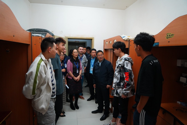 10月11日晚,重庆城市管理职业学院党委书记任波,校长邓明国,党委副书记张新,副校长罗小秋,纪委书记杨寿康,副校长邹迟、袁国、莫堃分别带队走访学生寝室,看望慰问2020级新同学,了解新生入住状态,关心新生生活情况。相关职能部门和各二级学院负责人参加走访。