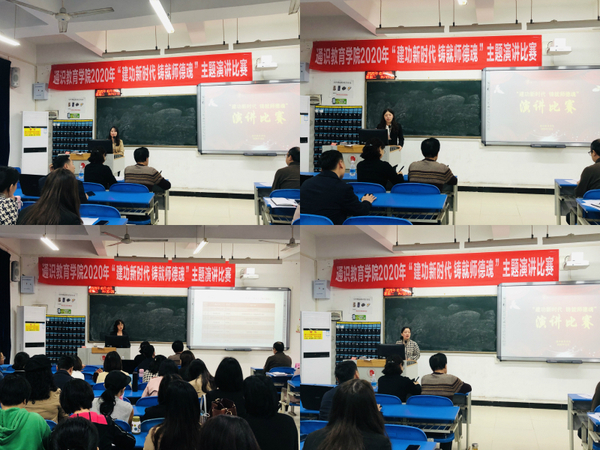 随后,来自通识教育学院4个党支部推荐的8名教师围绕主题展开了精彩演讲。他们从自身的教学经历、学生工作、职业梦、中国梦、青春梦的初心等角度出发,紧扣师德师风建设和传承,以大量的实例展开演讲;并以扎实的文稿、饱满的热情、丰富的语言为我们呈现了一场精彩的演讲比赛。经过评委现场评分、复核,刘洪均教师荣获一等奖,陈忠怡、田彤教师荣获二等奖,王佳宣、顾军霞、张雅澜、谢周艳、向士旭教师荣获三等奖。
