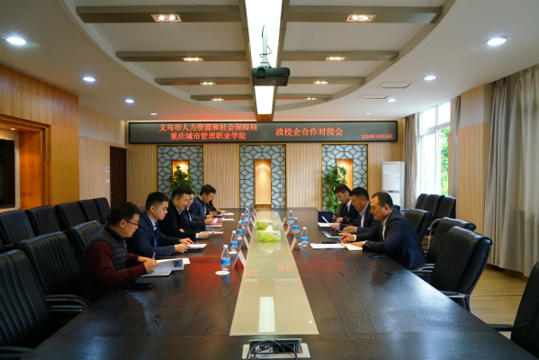 10月15日上午,浙江省义乌市人力资源和社会保障局纪委书记陈贻军、义乌市农业农村局办公室主任何孝旦、义乌市人才发展集团项目经理周晨阳等一行到我校开展政校企合作交流,学校副校长袁国、产教融合中心主任江柯、学生处副处长潘伟、教务处、科研与发展规划处等职能部门的相关负责同志参加了合作交流会。