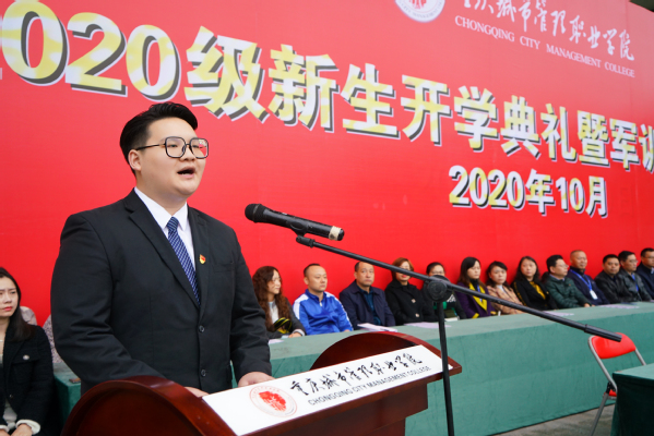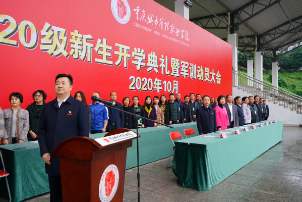10月16日,我校在田径运动场举行2020级新生开学典礼暨军训动员大会。在家校领导、承训部队官兵、学校中层干部、教师代表、新生辅导员、高年级学生代表,以及2020级6000余名新生参加大会。大会由学校军训工作领导小组组长、军训师政委、副校长袁国主持。