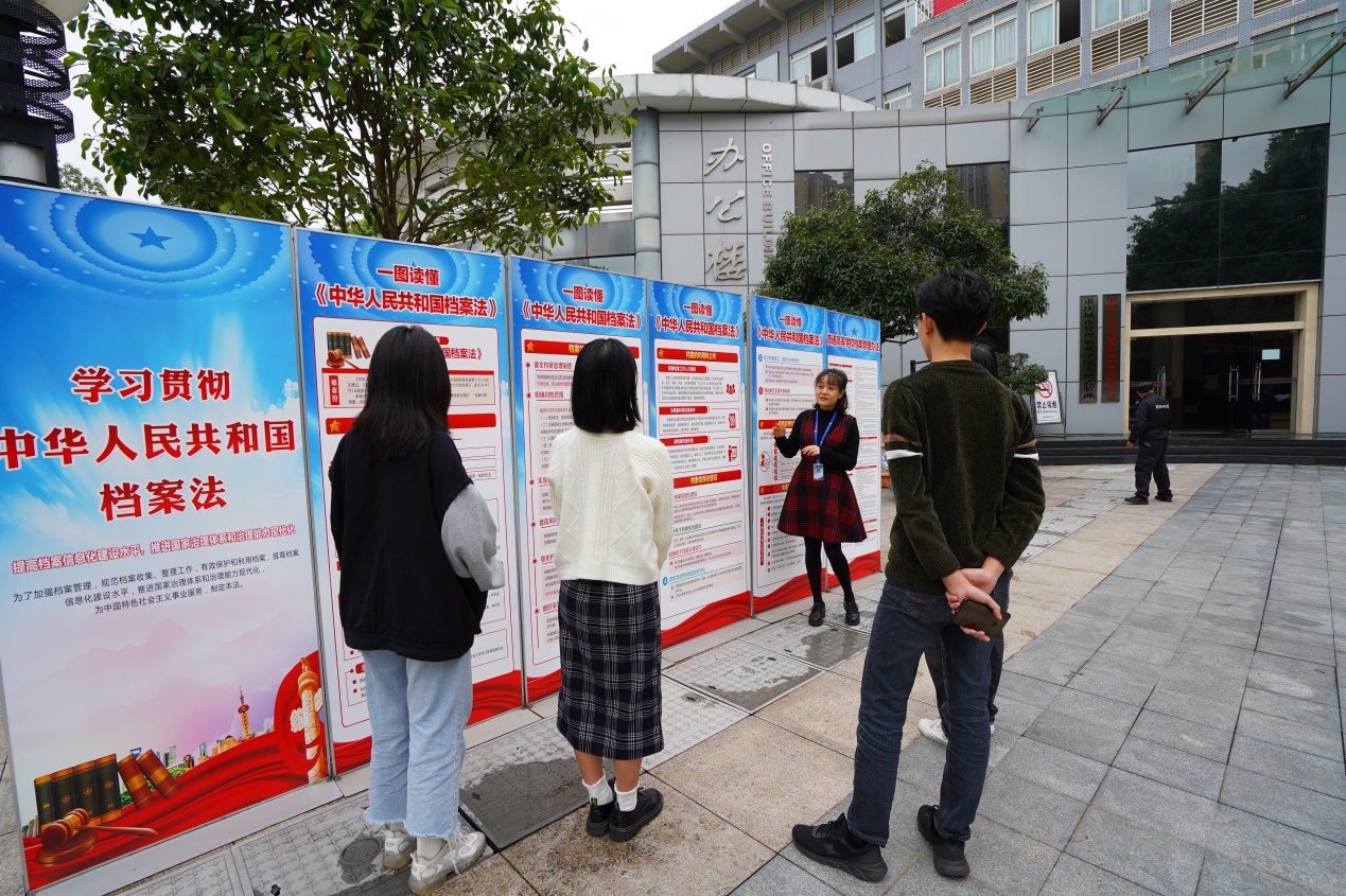 活动期间,档案科分别在办公楼、教学楼设立宣传点,学校档案管理人员以通俗易懂的方式,就在校生学籍档案管理等问题向前来咨询的师生进行讲解;在办公楼、教学楼展出《档案法》宣传材料,生动展现了新修订《档案法》的内容、档案的重要作用及档案安全知识;通过发放档案法宣传手册、将《档案法》纳入党委中心组法治专题学习和教职工政治理论学习内容等方式,组织干部师生学习《档案法》,使档案法治观念深入师生心中。