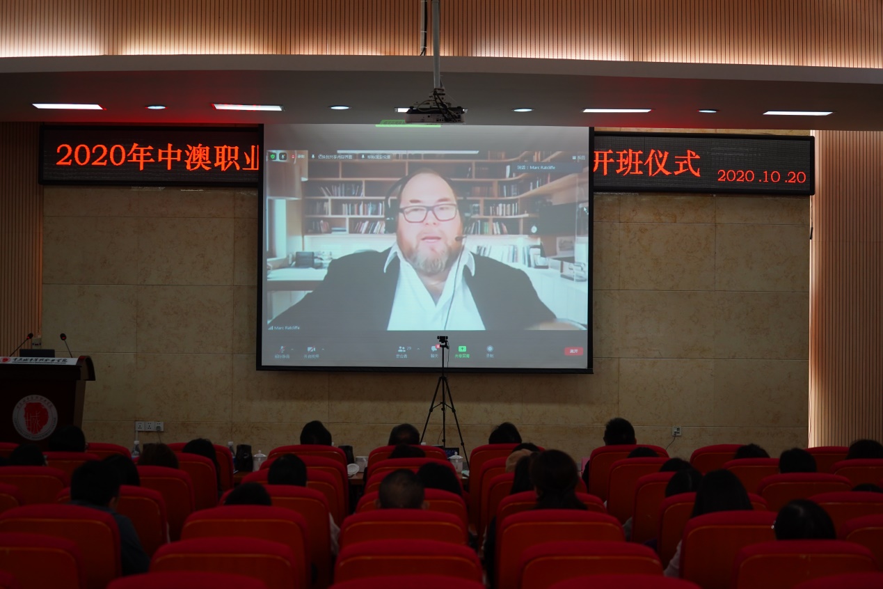 10月20日,2020年中澳职业教育创新管理国际培训班开班仪式在我校成功举办。本次培训项目是由重庆市人民政府外事办公室、重庆友好城市布里斯班市政厅、重庆市教委支持,由重庆高职教育国际合作联盟、澳大利亚职业教育协会、中国-澳大利亚(重庆-昆士兰州)职业教育合作项目办公室及我校联合主办。