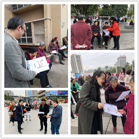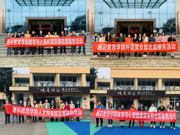 当日下午,外语党支部联合数学与计算机党支部来到江津双福街道,人文党支部联合体育与心理健康党支部走进璧山璧泉街道观音社区,在当地街道办事处和社区的大力支持下,志愿者们开展了“光盘行动”宣传服务活动。志愿者向街道办附近的广场及沿路居民宣传发放“光盘行动”宣传材料,为他们讲解“光盘行动”的背景及现实意义,倡议大家节约惜福、文明用餐、拒绝浪费。