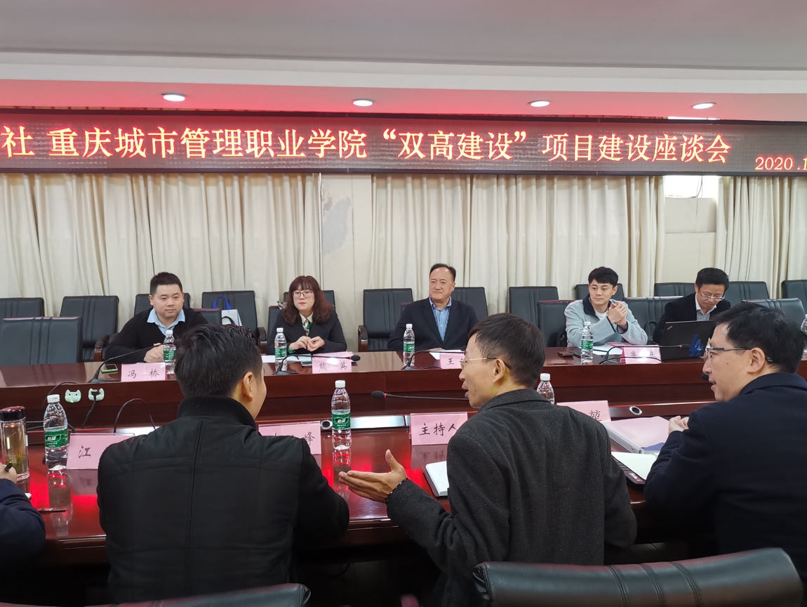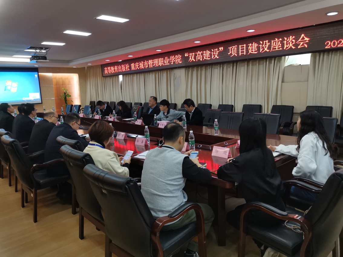 10月21日,我校召开高等教育出版社重庆城市管理职业学院“双高计划”项目建设座谈会。会议由学校副校长莫堃主持,高等教育出版社在线职业教育发展中心主任王冰,高等教育出版社高职出版事业部综合管理办公室首席管理鲁巍,高等教育出版社重庆教学服务中心副主任熊英,高等教育出版社重庆教学服务中心院校代表徐稷农,高等教育出版社重庆教学服务中心院校代表冯桥,我校教务处、产教融合中心和各二级学院负责人参会。