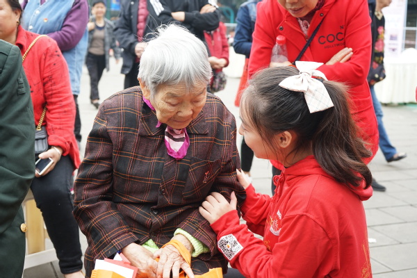活动现场,志愿者在与老人的聊天中听到了很多感人的故事。82岁的余爷爷表示,当年去一起去参加西藏保卫战的一共有8人,可回来的只有3人,现在生活好了,自己没事儿就去社区走走看看,给孩子们讲讲当年的故事。86岁的李婆婆作为一个老党员在回忆旧时岁月中说:“现在生活好了,一个月还有3000块钱,不愁吃不愁穿,过上了以前想都不敢想的好日子。”志愿者们还协助重庆市沙坪坝区养老服务协会做好了文艺汇演中的会务工作,并为社区老人送上精心准备的礼品。