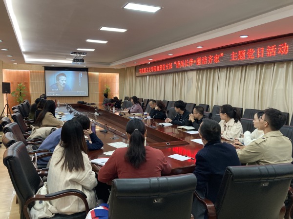 为深入学习贯彻习近平总书记关于反腐倡廉系列讲话精神,巩固拓展“不忘初心、牢记使命”主题教育成果,加强党员廉洁教育,马克思主义学院直属党支部积极响应重庆市纪委和学校党委要求,于10月27日下午在办公楼第二会议室开展“清风常伴·廉洁齐家”主题党日活动。活动由马克思主义学院直属党支部书记唐丽主持,支部全体党员参加教育活动。