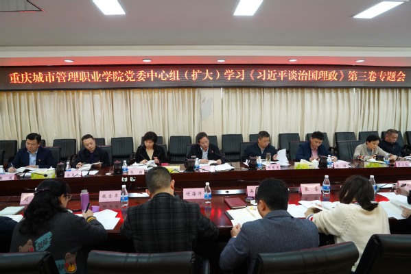 10月29日,学校在办公楼第二会议室召开党委中心组(扩大)学习《习近平谈治国理政》第三卷专题学习会。学校党委委员、校领导,学校党委职能部门负责人、党总支书记、直属党支部书记参加学习会。市教育工委巡听旁听第三工作组,市教委宣教处副处长钱程、重庆第二师范学院党委宣传部部长严国华、市教委宣教处干部姜瑞民到会巡听旁听、督促指导。学校党委书记任波主持学习会。