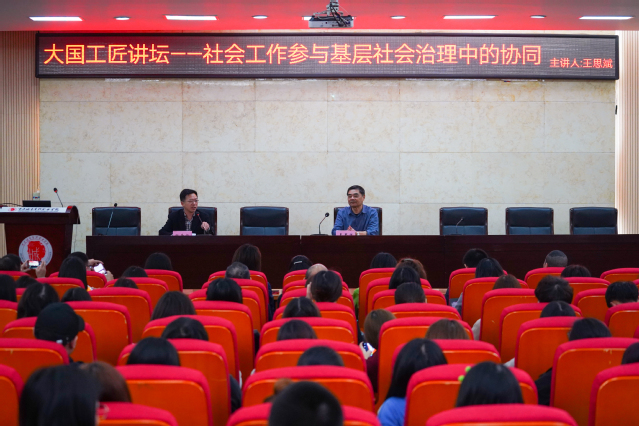 随后,民政与社会治理学院在办公楼第一会议室举办第一期大国工匠讲坛,王思斌教授开展了“社会工作参与基层社会治理中的协同”的主题讲座,民政与社会治理学院全体教职工、部分专业学生代表参加讲座。讲座由民政与社会治理学院院长田奇恒主持。