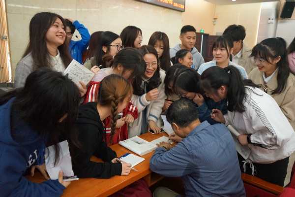 在三个多小时的讲座中,王教授情绪饱满、神采矍铄,讲解内容高屋建瓴、深入浅出,讲述语言诙谐幽默、生动有趣。师生们不仅被他深厚的讲座内容深深吸引,也被王教授生动活泼的演讲风格深深折服,讲座过程中,会场不时响起热烈的掌声。讲座结束时,王教授被同学们的求知欲和学习热情打动,与师生们合影留念并赠送寄语。