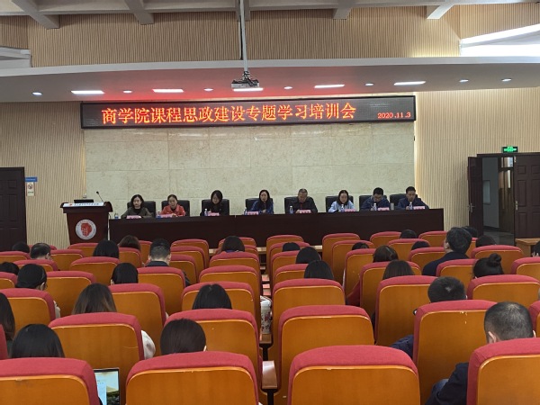 为进一步贯彻落实习近平总书记对高校思想政治工作的重要指示精神和教育部《高等学校课程思政建设指导纲要》,11月3日,商学院在办公楼第一会议室召开课程思政建设学习培训会,商学院党总支书记蒋芹忠,教务处副处长陶学梅,商学院党总支副书记唐鸿铃、副院长邱云,马克思主义学院姚红教授、四联系教师严红、商学院80余名专任教师参加培训会。会议由商学院副院长黄蘋主持。